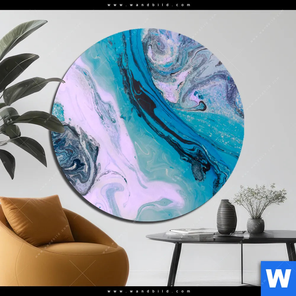 Alu-Dibond Bild | Liquid Marmor Türkis Flieder | Rund