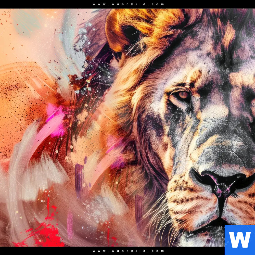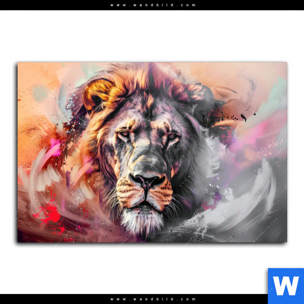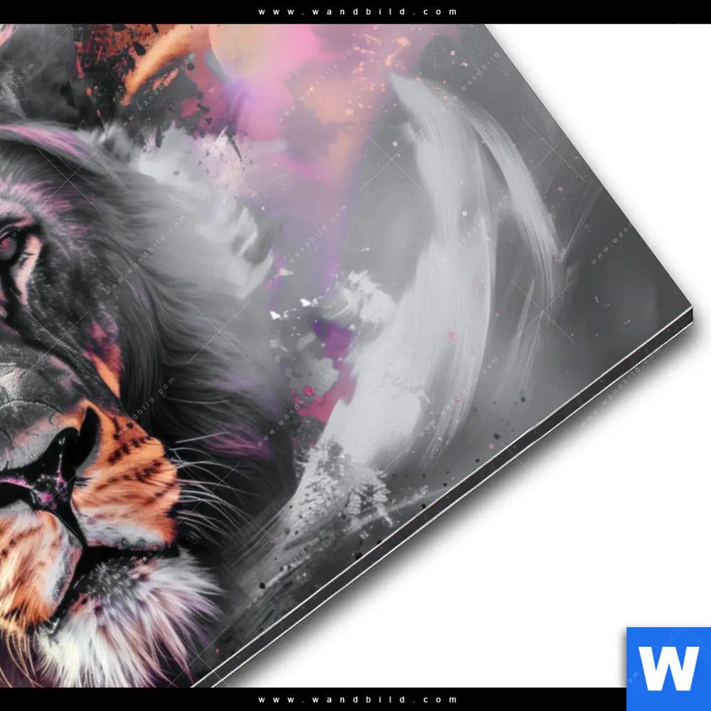 Alu-Dibond Bild | Löwe im Farbensturm | Querformat