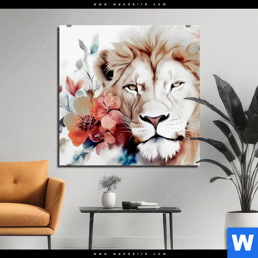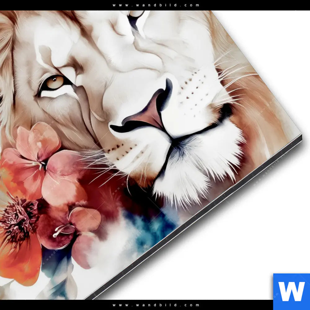 Alu-Dibond Bild | Löwe mit Blumen | Quadrat