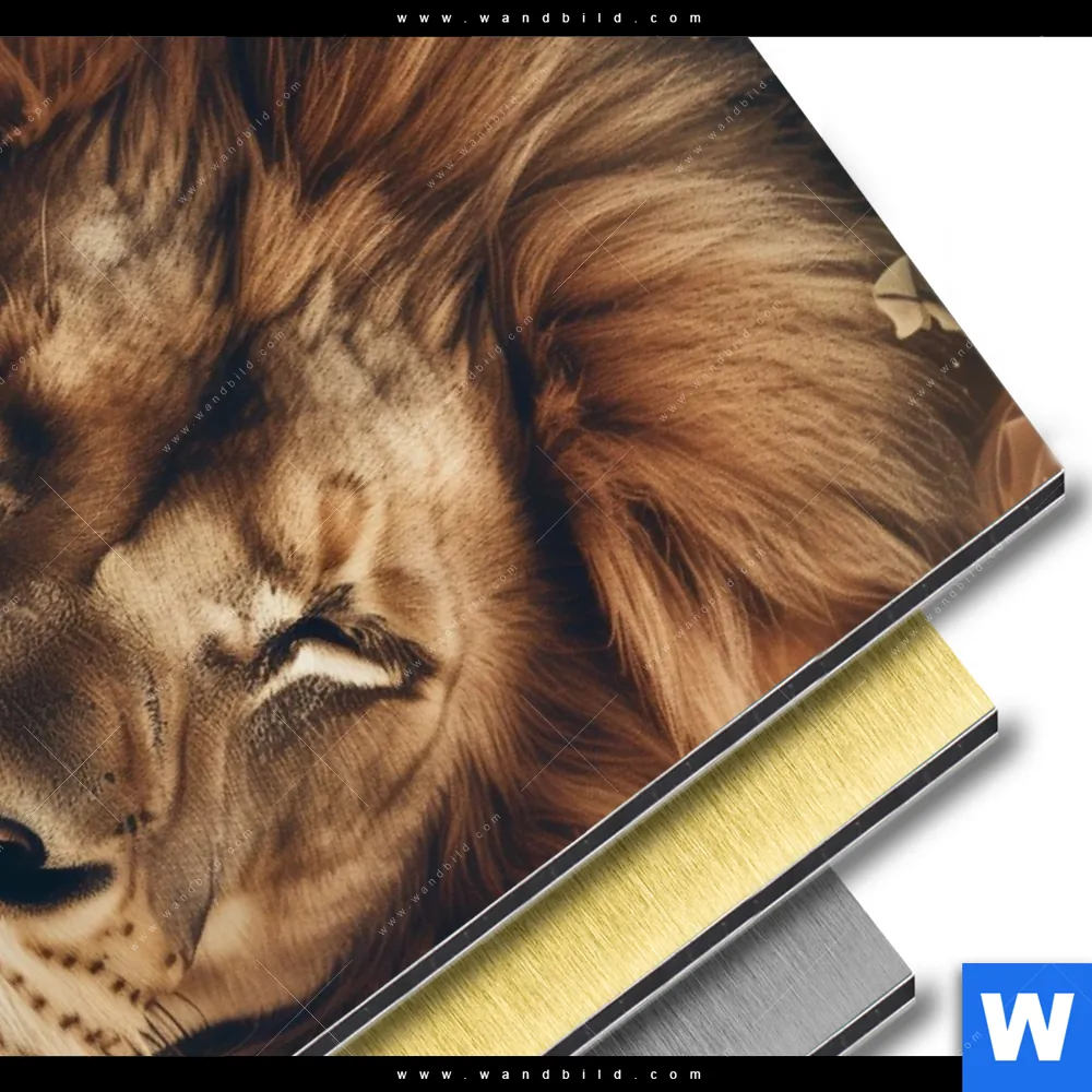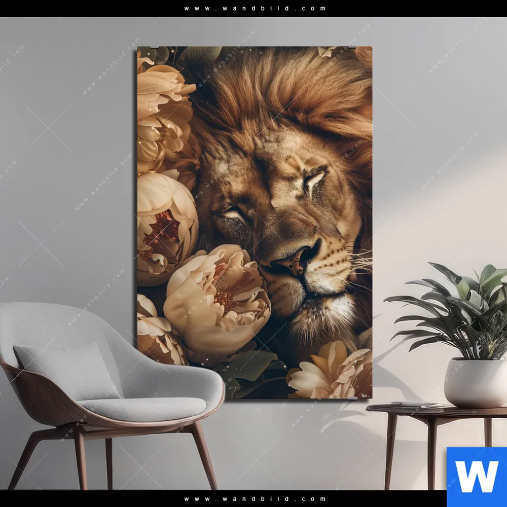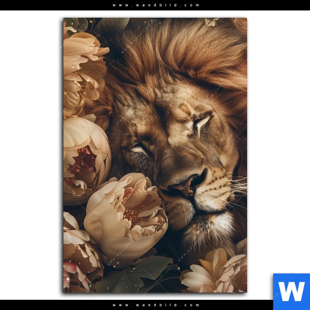 Alu-Dibond Bild | Löwe schläft in Blüten | Hochformat