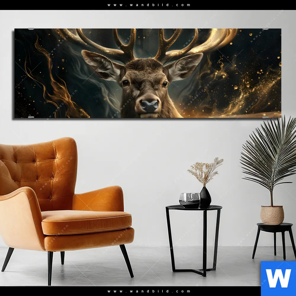 Alu-Dibond Bild | Magischer Hirsch im Sternenlicht | Panorama