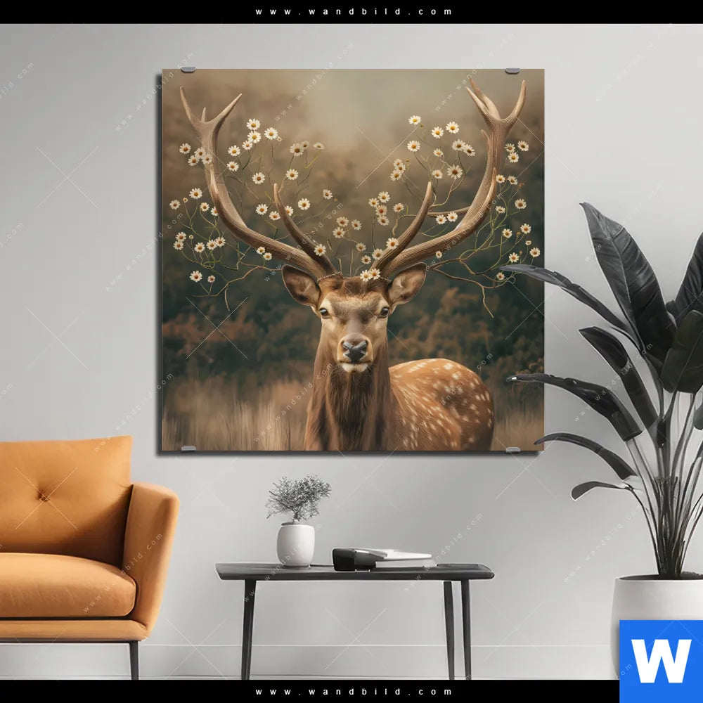 Alu-Dibond Bild | Magischer Hirsch im Waldrand | Quadrat