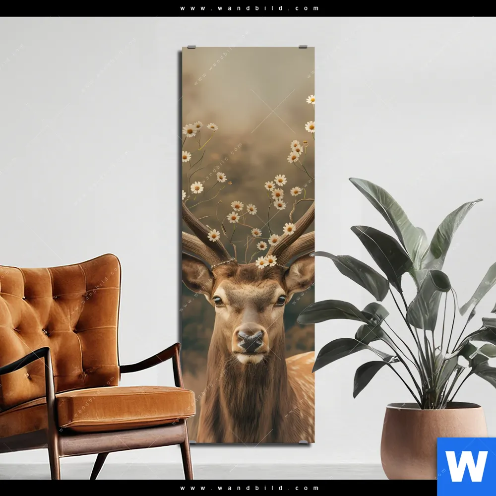 Alu-Dibond Bild | Magischer Hirsch im Waldrand | Schmal