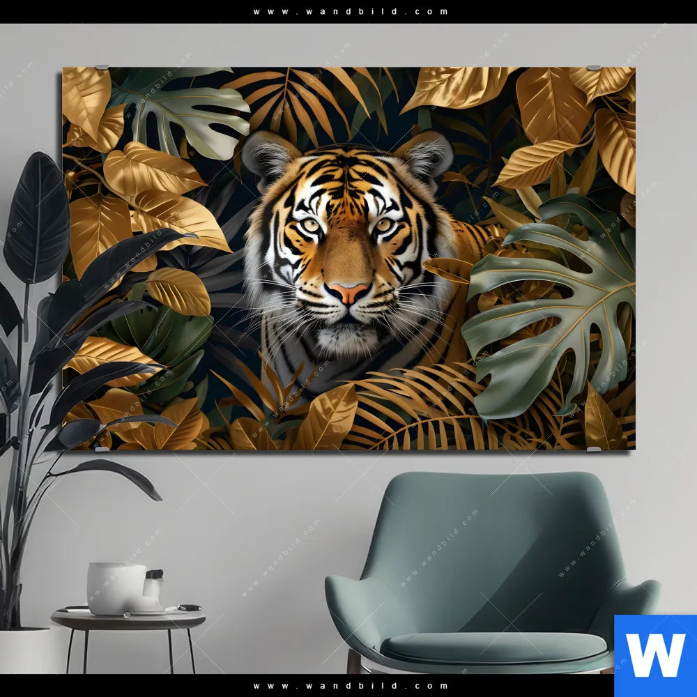 Alu-Dibond Bild | Majestätischer Tiger im Dschungel | Querformat
