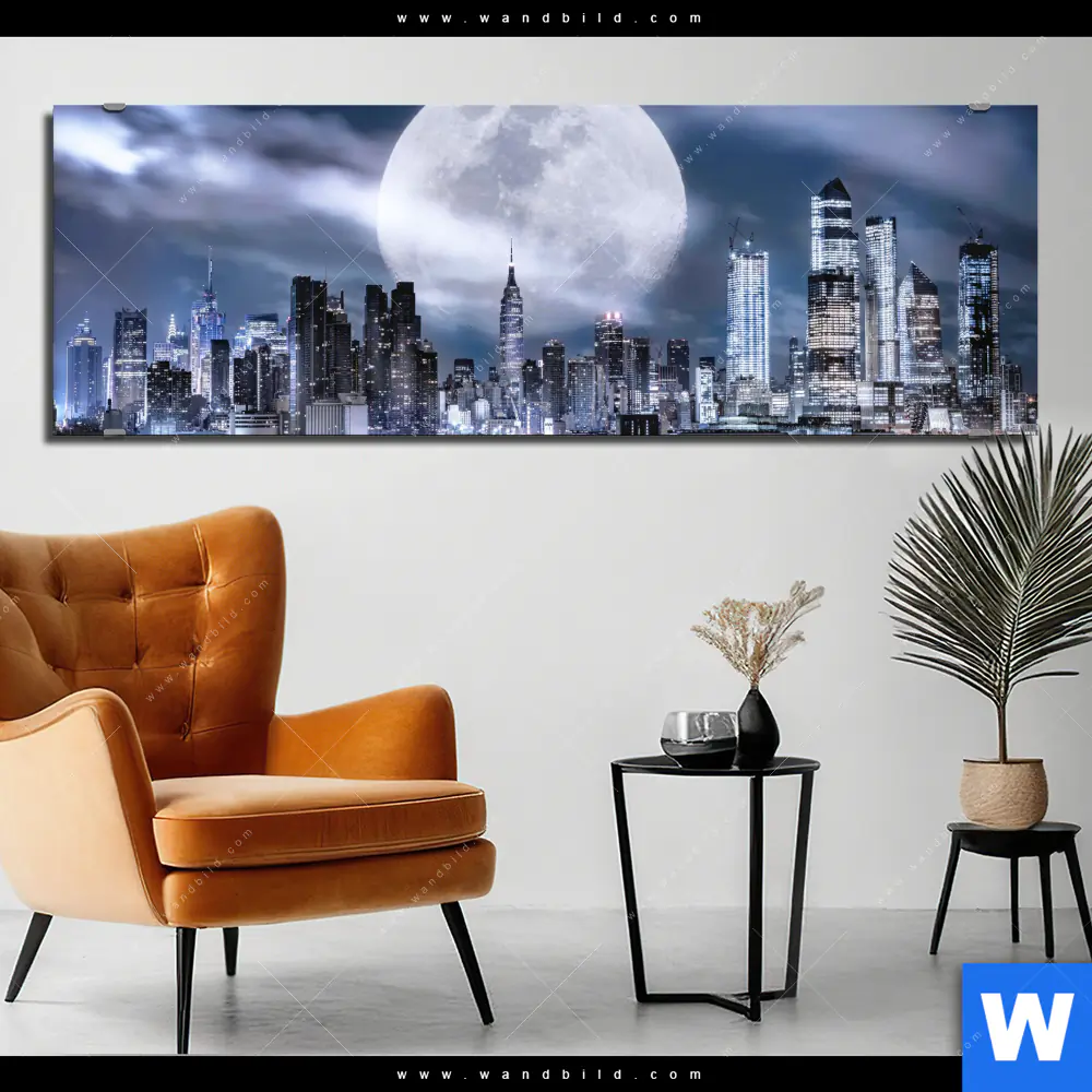 Alu-Dibond Bild | Manhattan - Giganten im Silberlicht | Panorama
