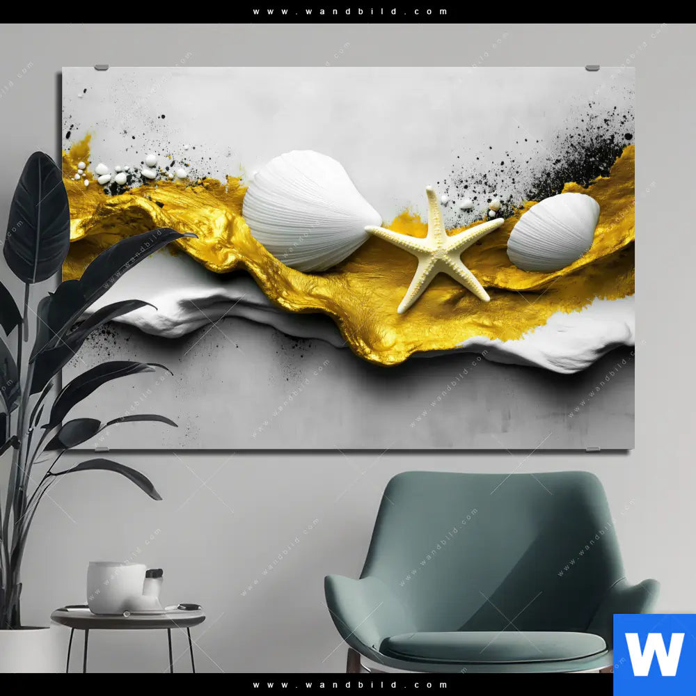 Alu-Dibond Bild | Maritime Muschel-Kunst | Querformat