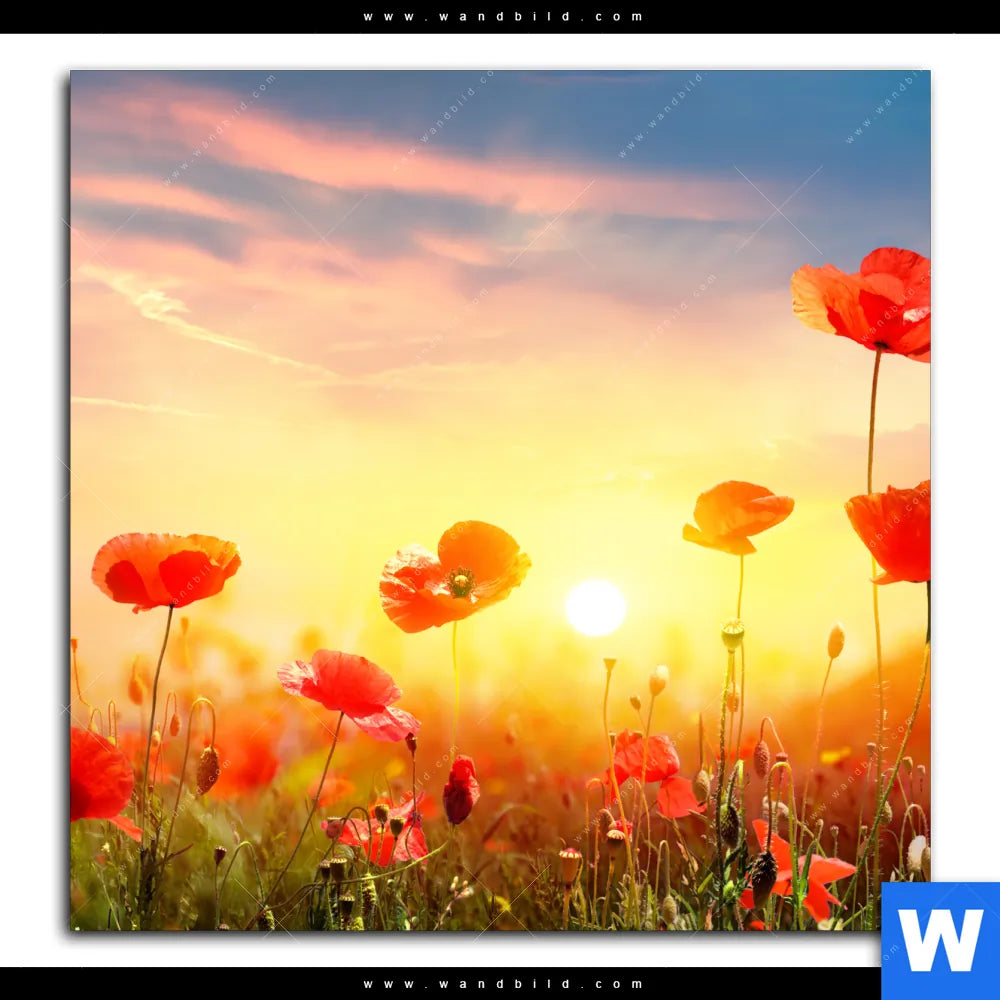 Alu-Dibond Bild | Mohnblumenfeld bei Sonnenuntergang | Quadrat
