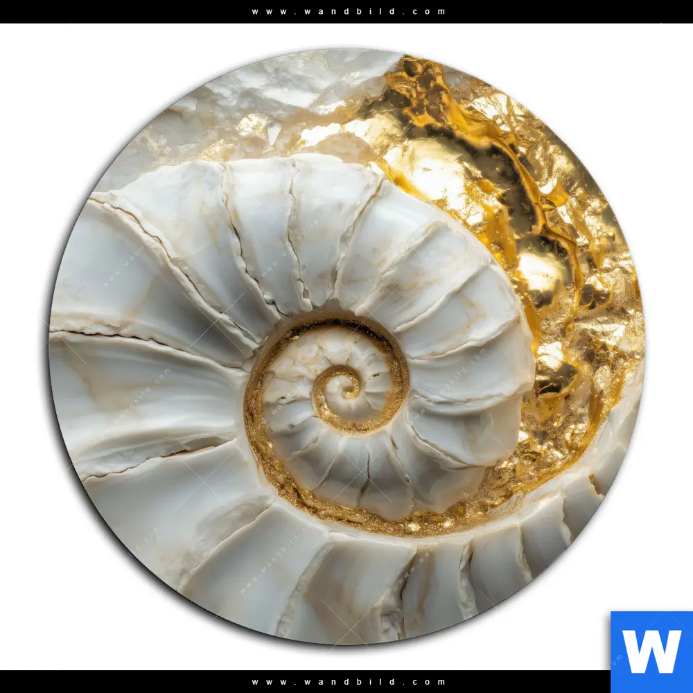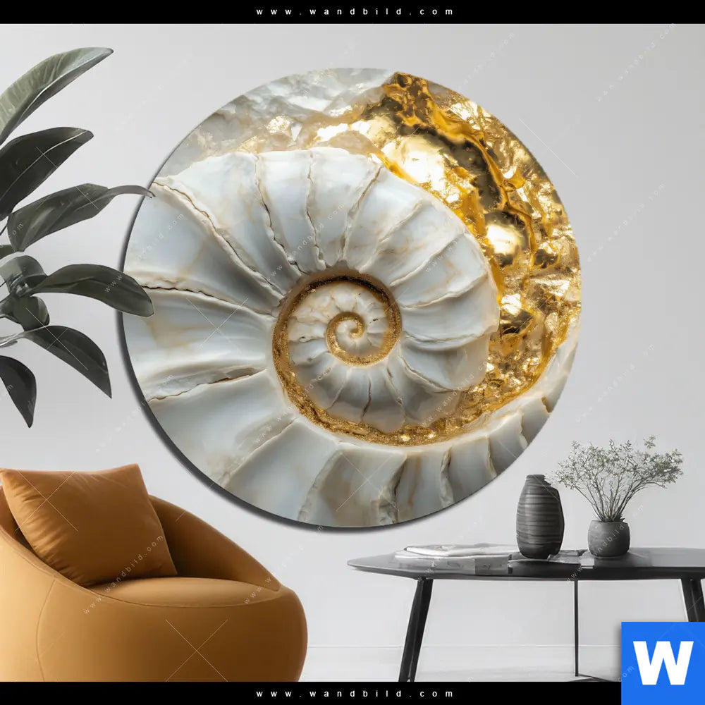 Alu-Dibond Bild | Muschelspirale mit Gold | Rund