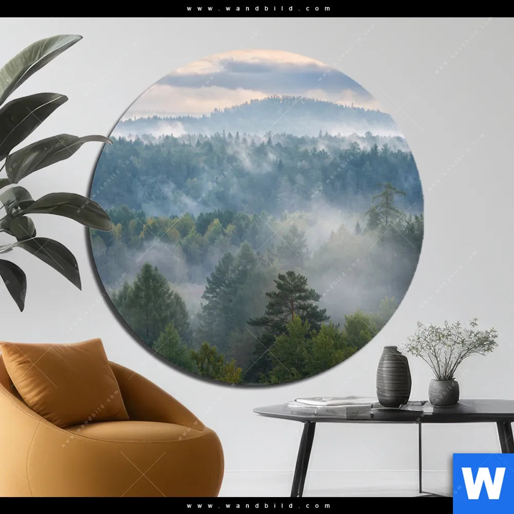 Alu-Dibond Bild | Nebel im Wald | Rund