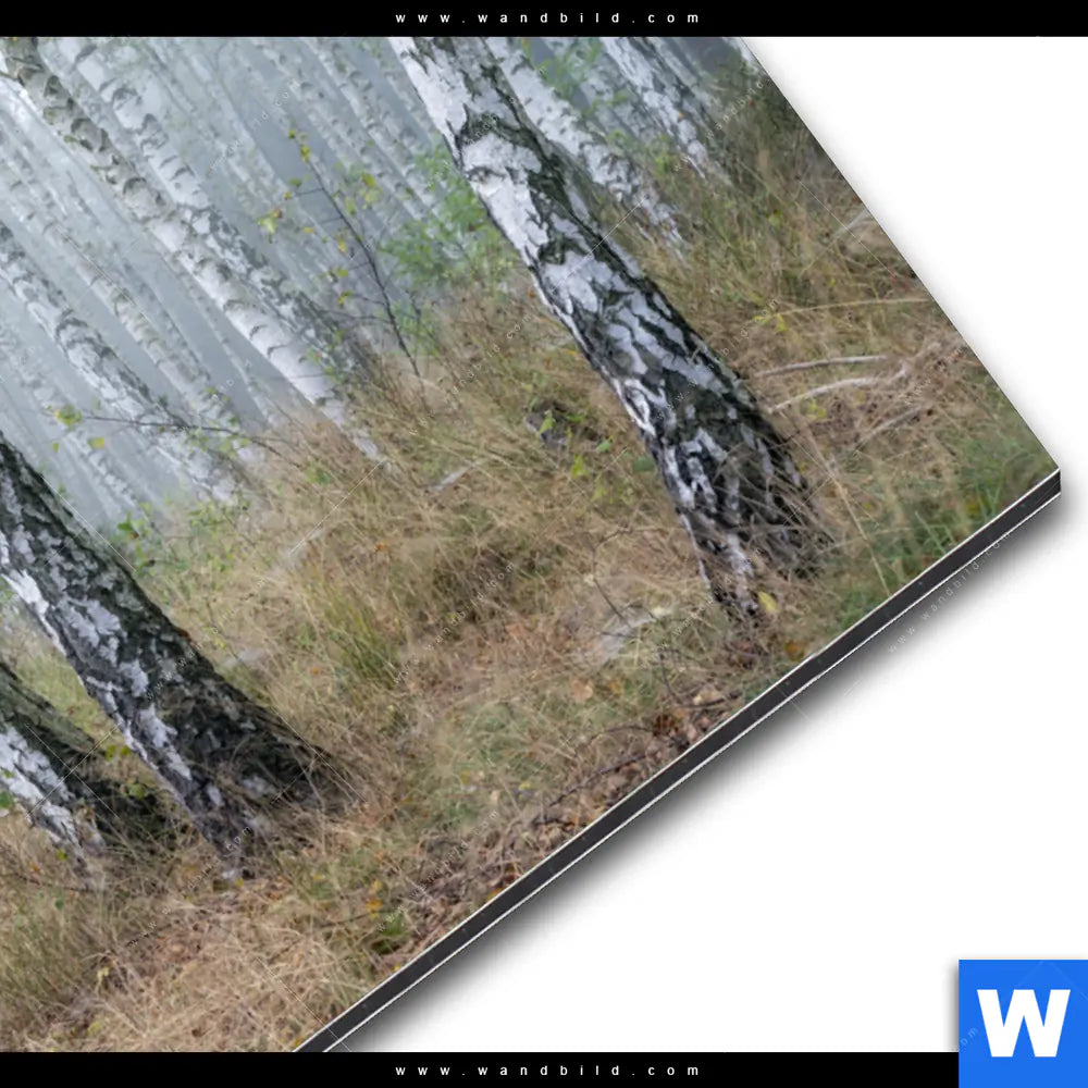 Alu-Dibond Bild | Nebliger Morgen im Birkenwald | Querformat
