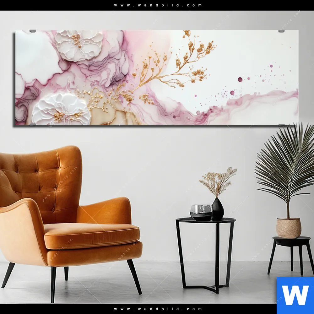 Alu-Dibond Bild | Pastell Blüten Moderne Kunst | Panorama