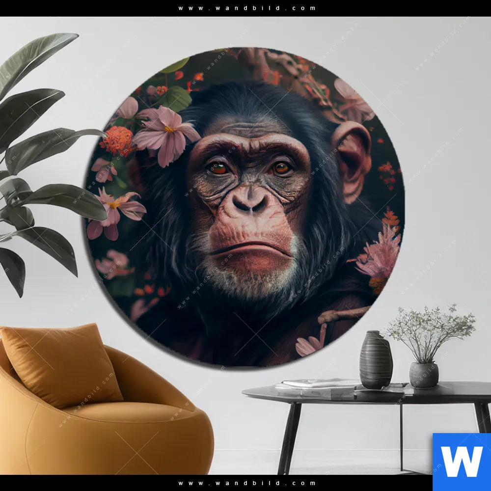 Alu-Dibond Bild | Schimpanse zwischen Blumen | Rund