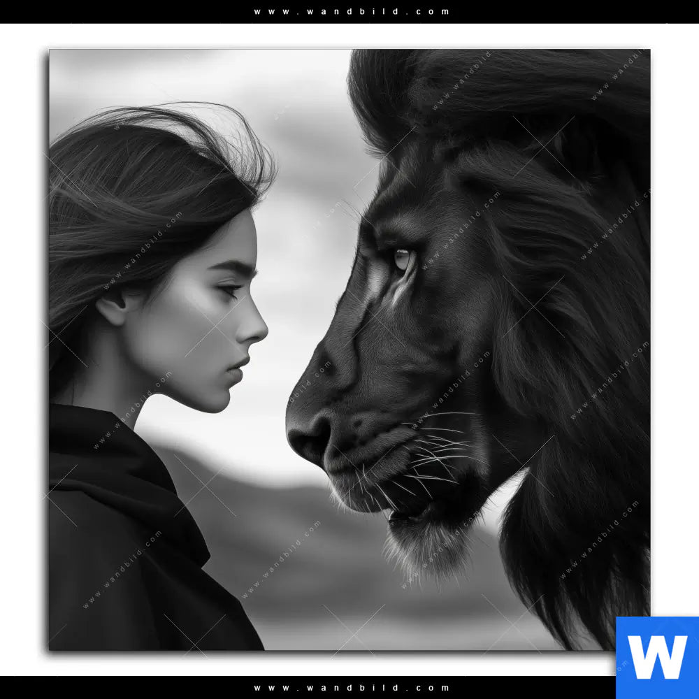 Alu-Dibond Bild | Seelenblick - Löwe & Frau | Quadrat