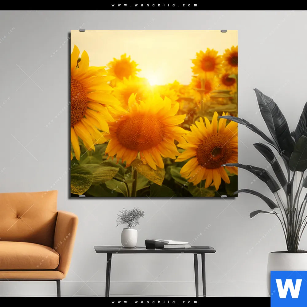 Alu-Dibond Bild | Sonnenblumen im Abendlicht | Quadrat