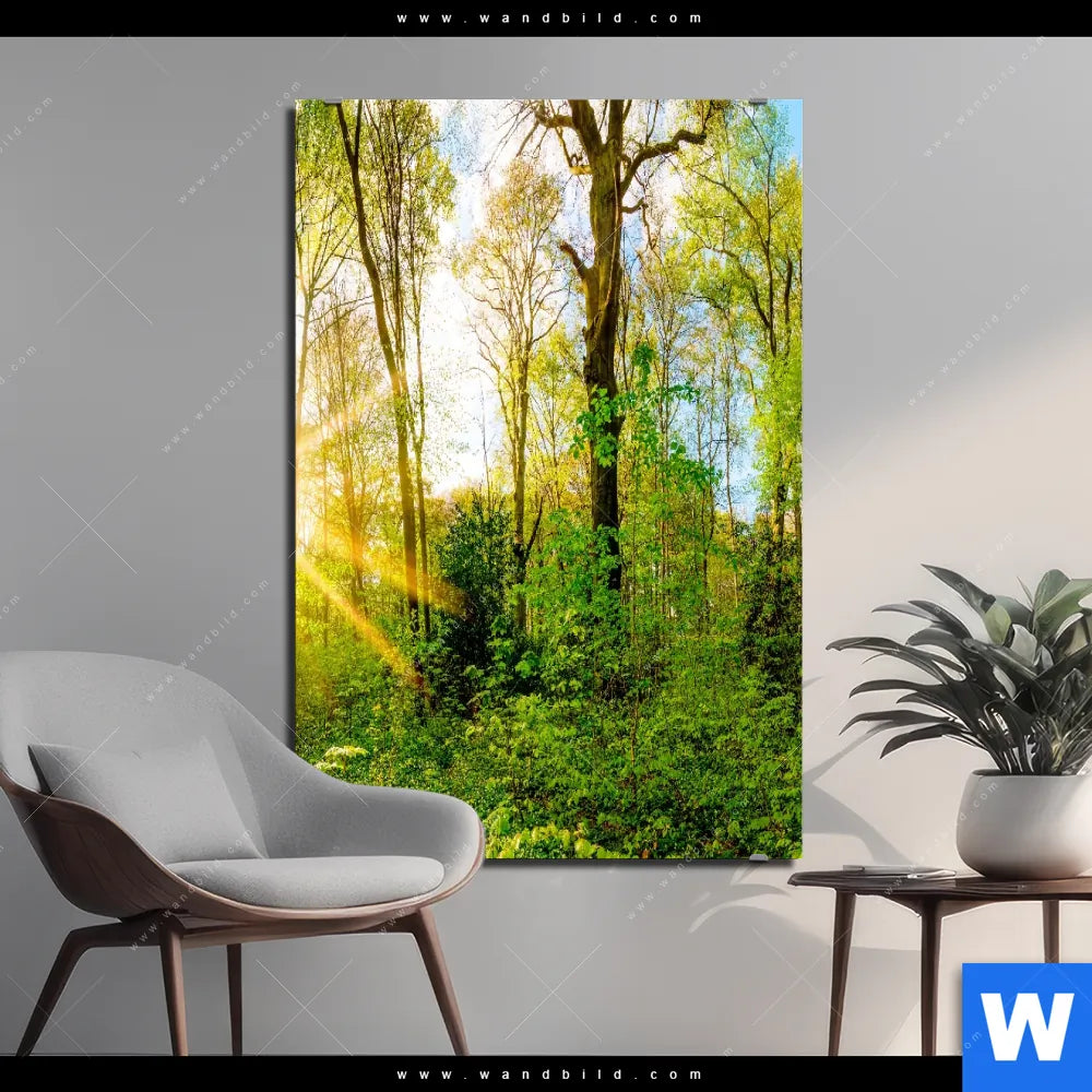 Alu-Dibond Bild | Sonnenlicht im Wald | Hochformat