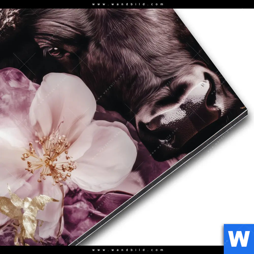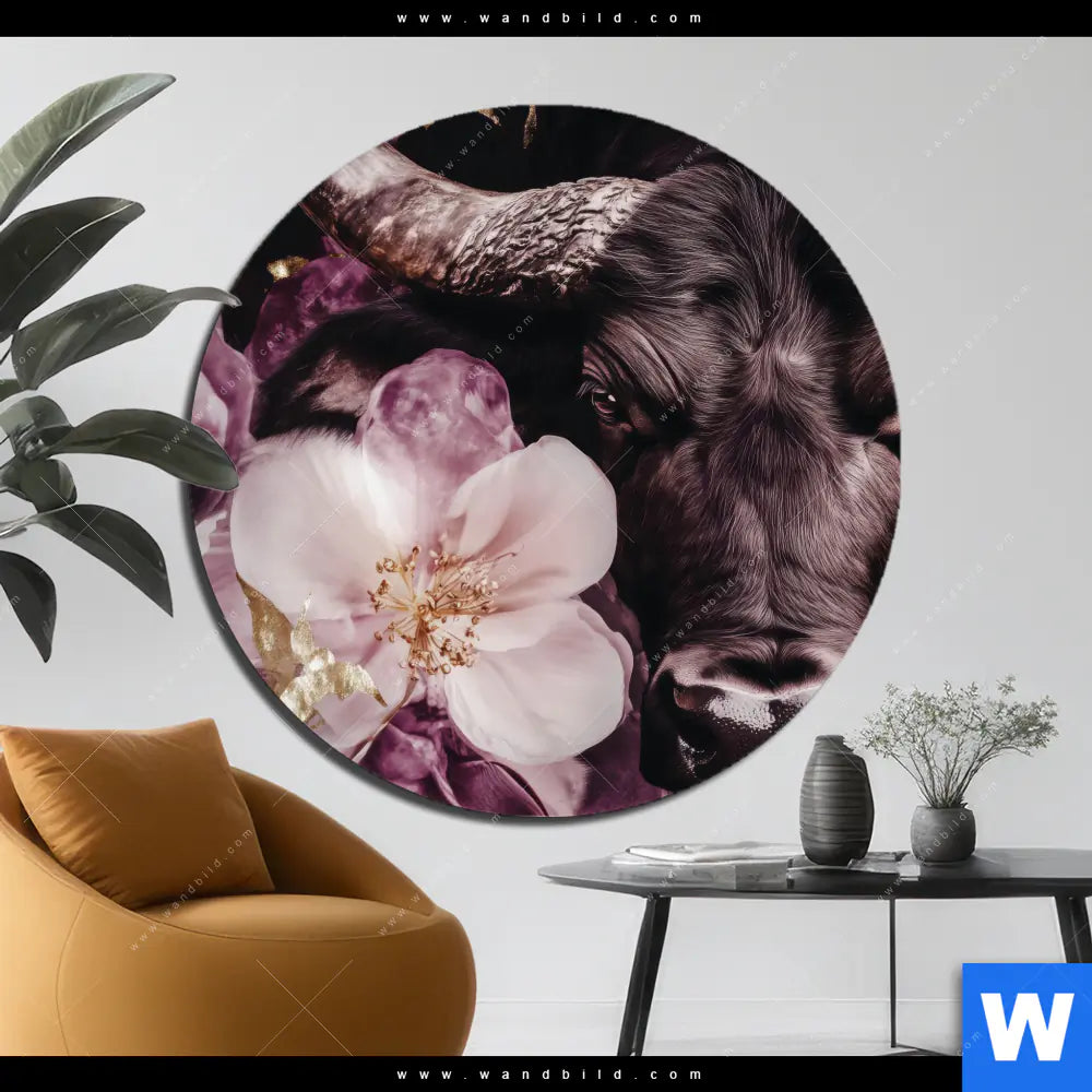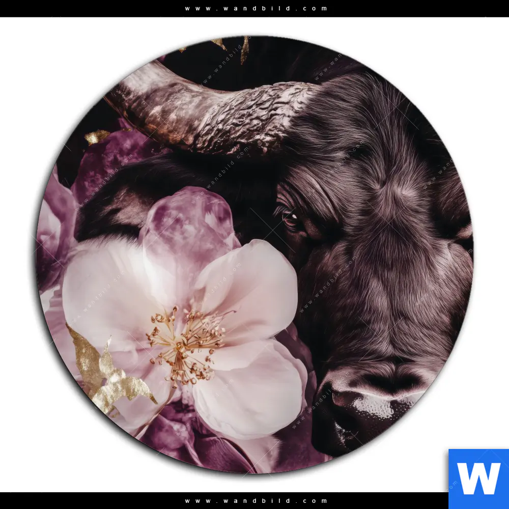 Alu-Dibond Bild | Stier mit Blumen | Rund