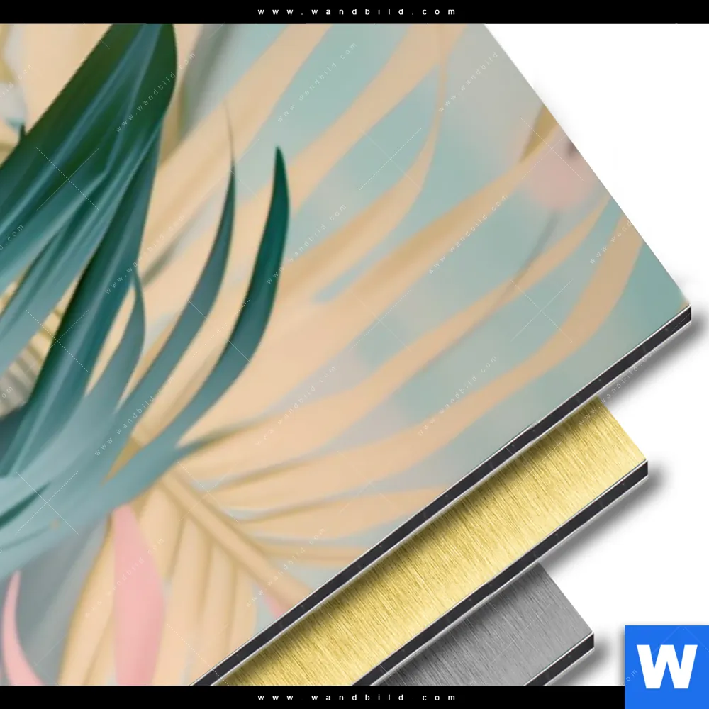 Alu-Dibond Bild | Tropische Blätter in Pastellfarben | Schmal