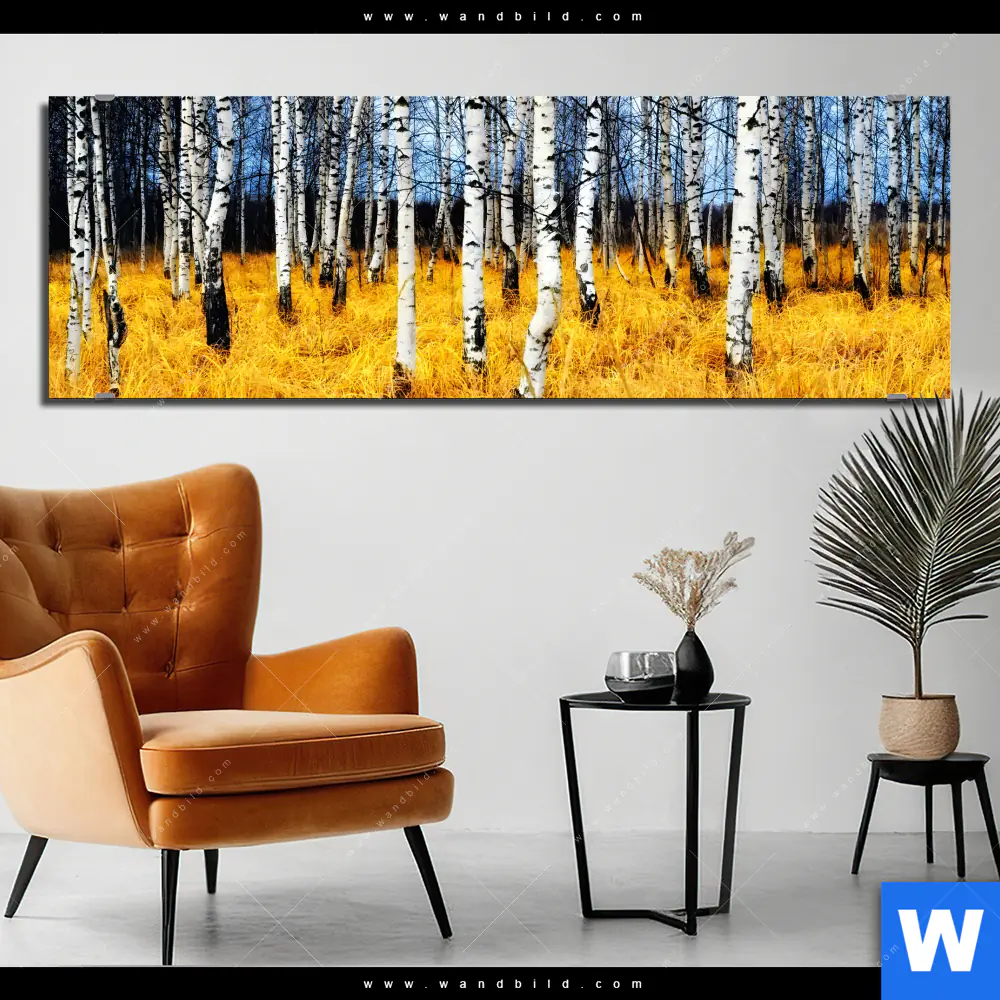 Alu-Dibond Bild | Wald mit Birkenbäumen | Panorama