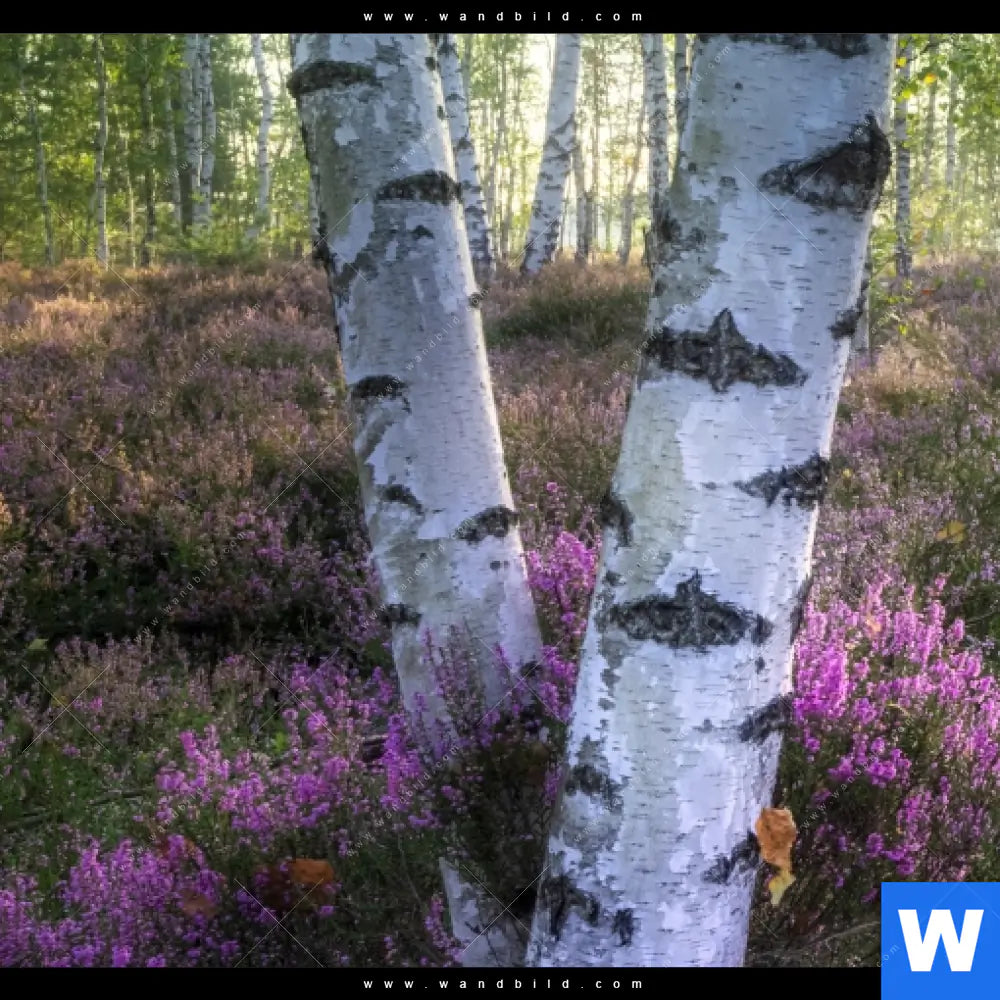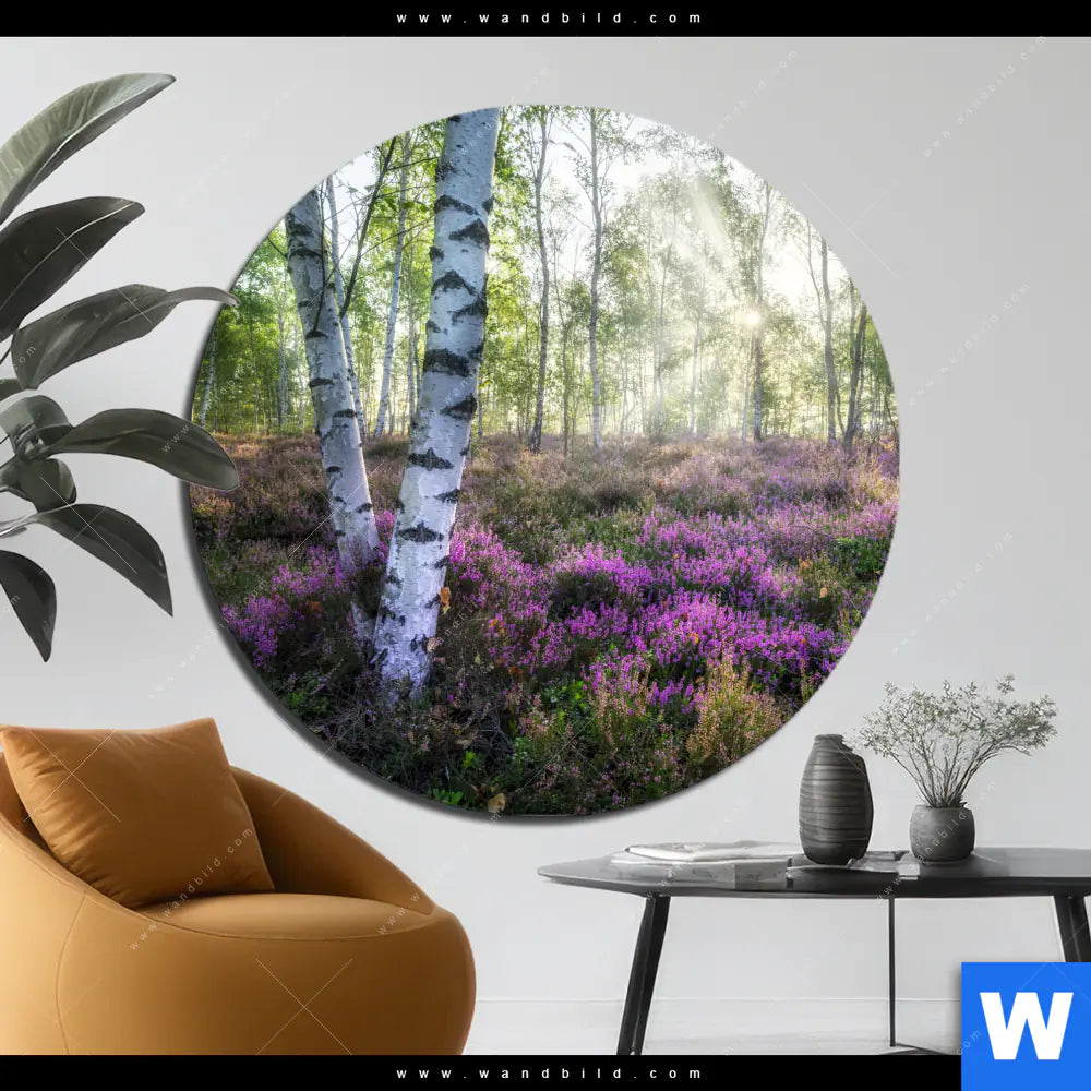 Alu-Dibond Bild | Wald mit Heideblumen | Rund