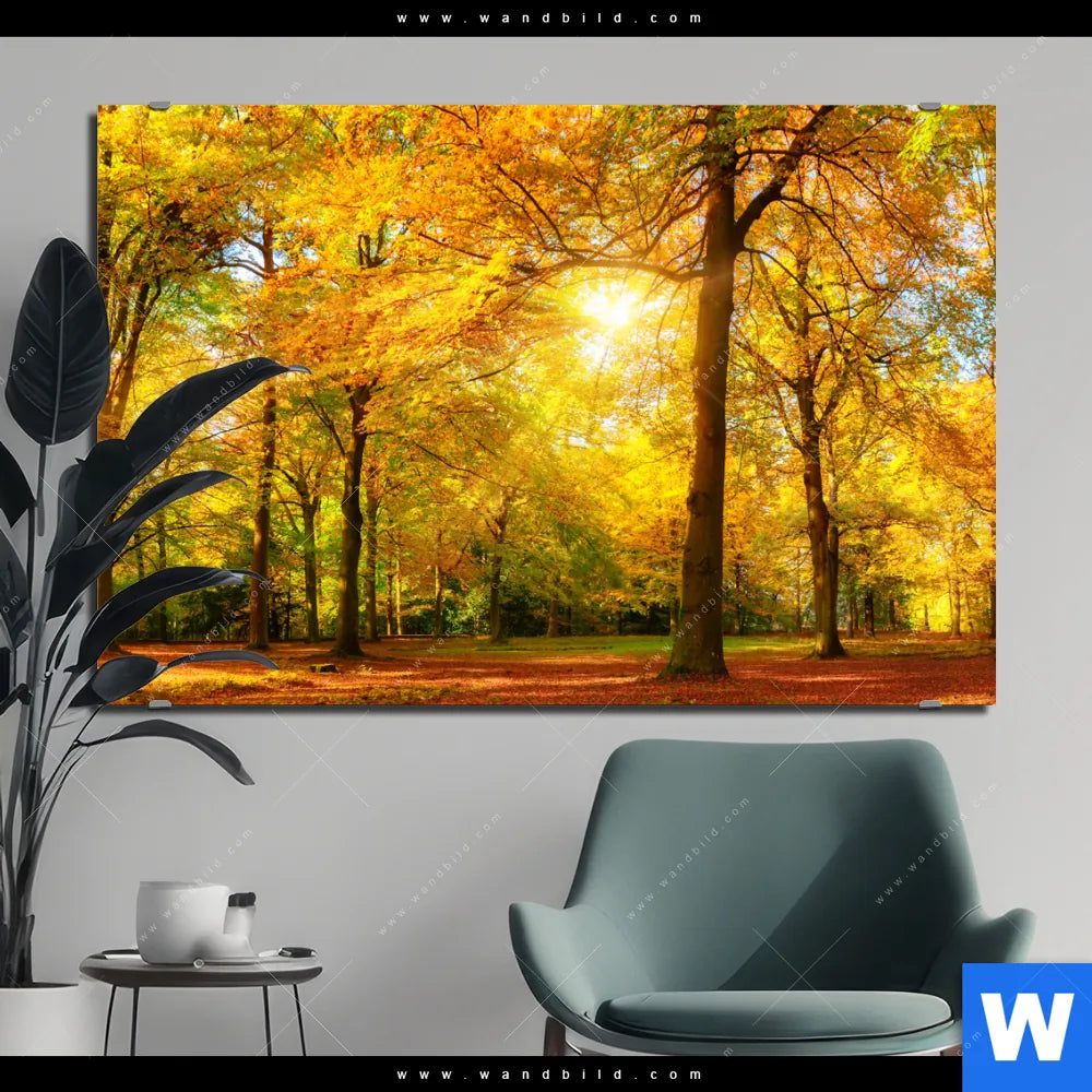 Alu-Dibond Bild | Waldlandschaft im Herbst | Querformat