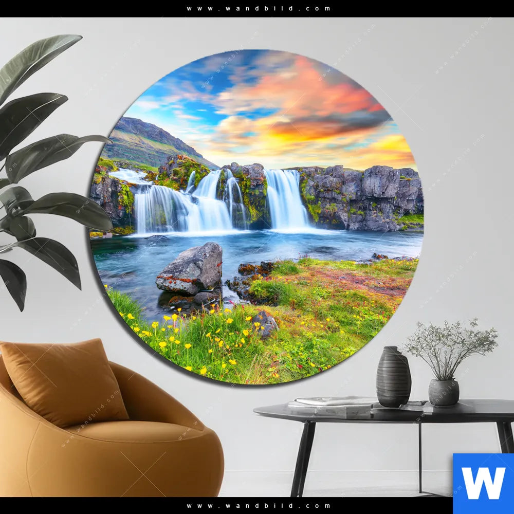 Alu-Dibond Bild | Wasserfall bei Sonnenuntergang | Rund