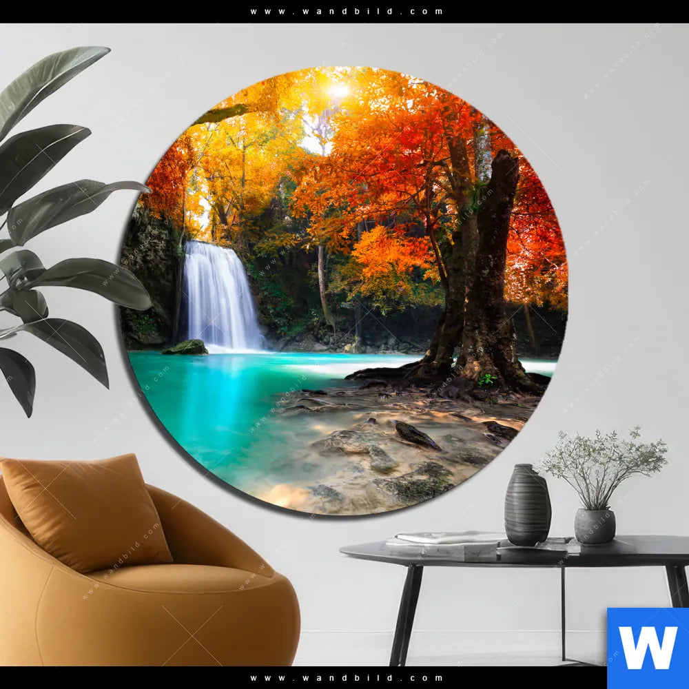 Alu-Dibond Bild | Wasserfall im Wald | Rund