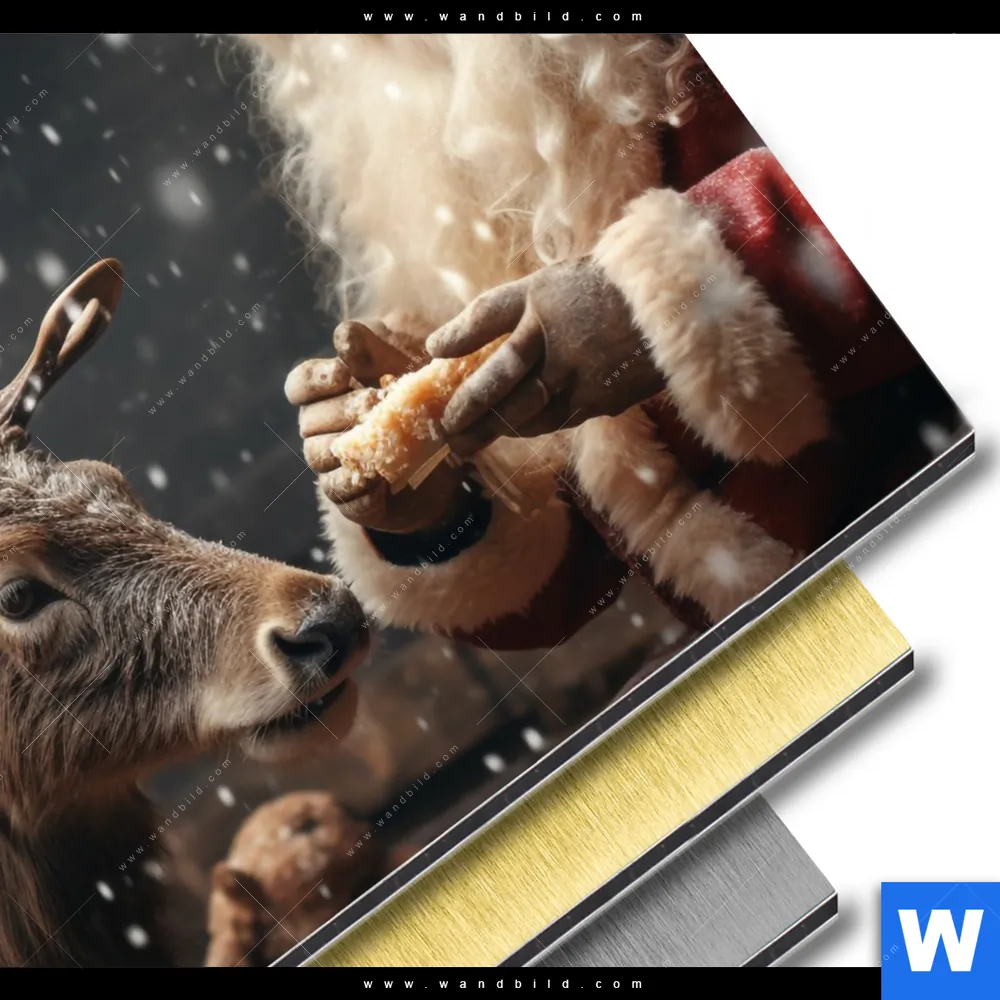 Alu-Dibond Bild | Weihnachtsmann füttert Rentier | Quadrat