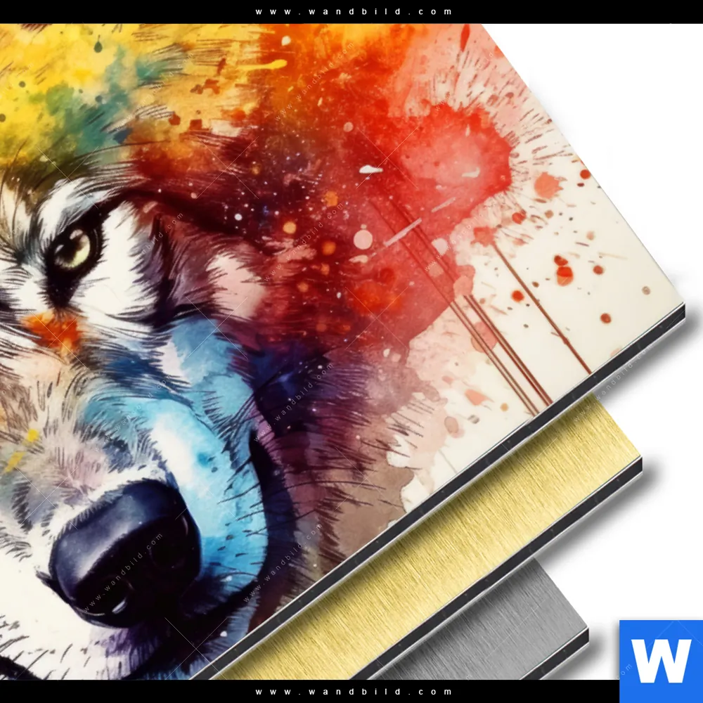 Alu-Dibond Bild | Wolf mit bunten Farbspritzern No. 2 | Querformat