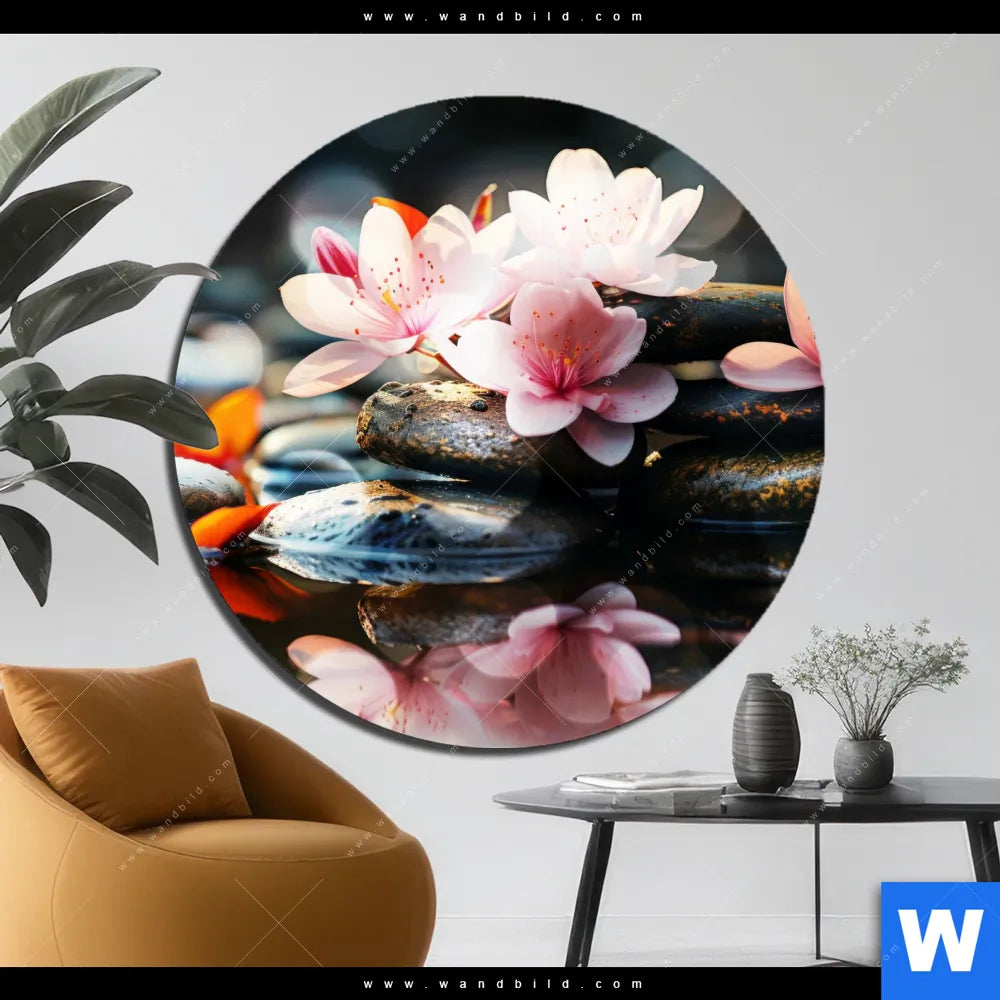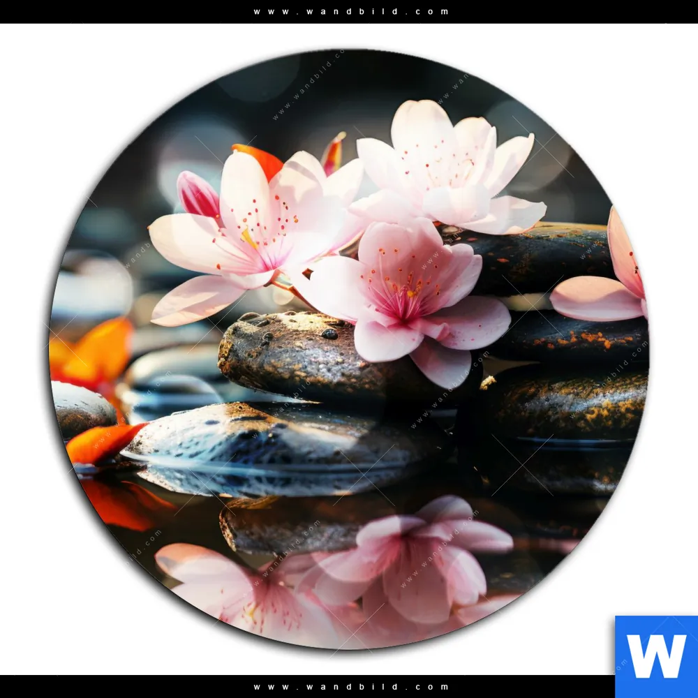 Alu-Dibond Bild | Zen Steine mit Blumen | Rund