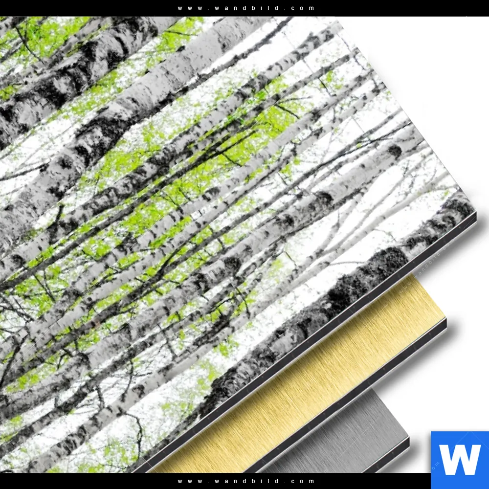 Landschaften, Wald - Bäume Aluminiumbild mit metallischem Effekt inkl. vormontiertem Rückrahmen