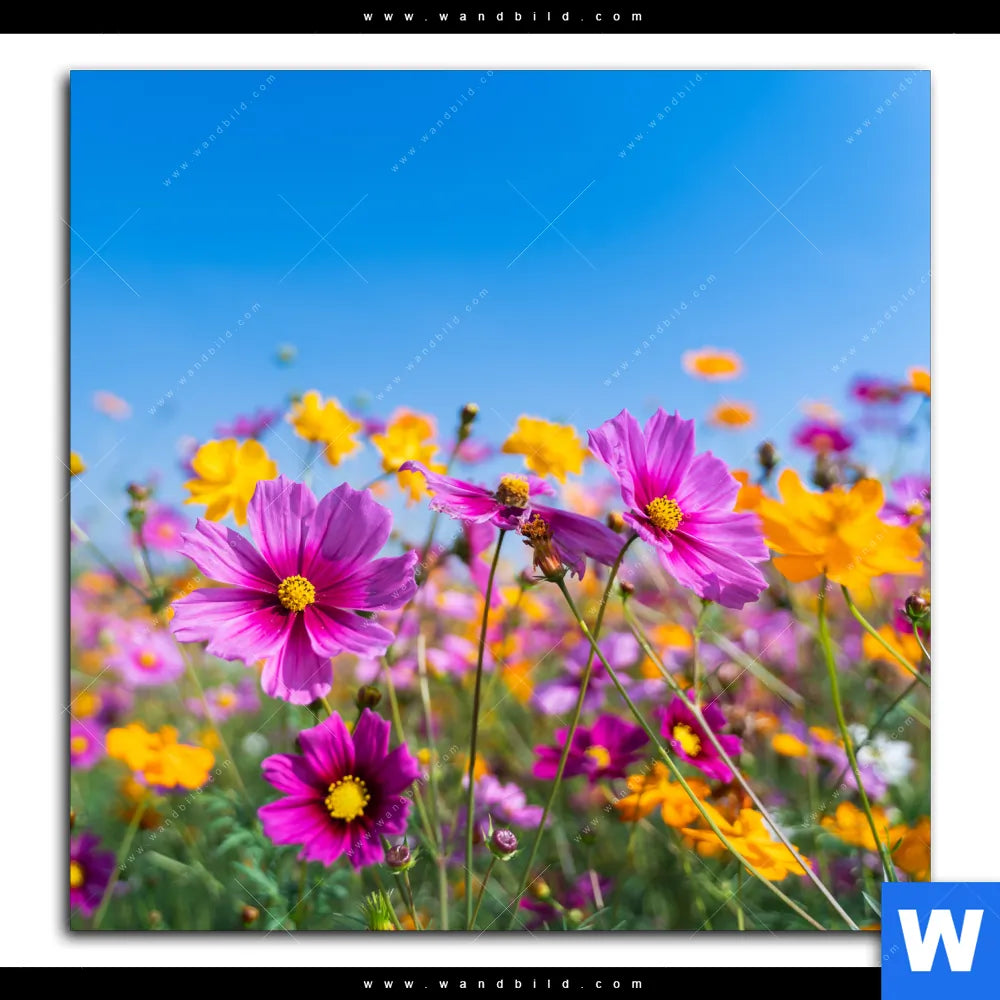 Aluminiumbild gebürstet | Blumenwiese unter blauem Himmel | Quadrat
