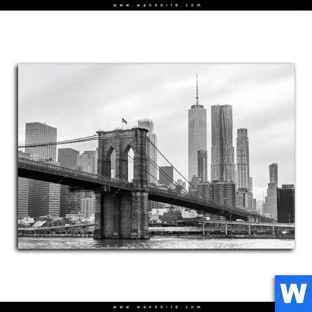 Aluminiumbild gebürstet | Brooklyn Bridge Schwarzweiß | Querformat