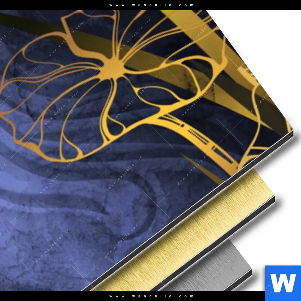 Aluminiumbild gebürstet | Buddha in Gold & Blau | Panorama