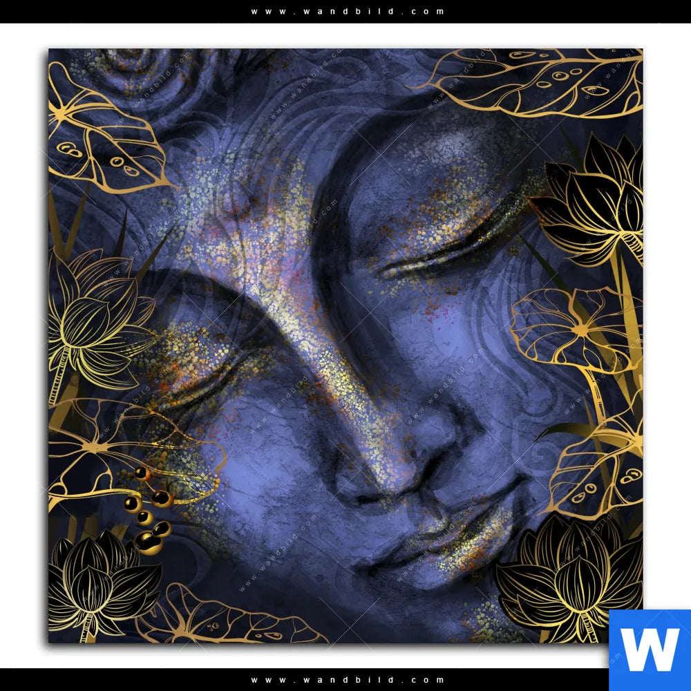 Aluminiumbild gebürstet | Buddha in Gold & Blau | Quadrat