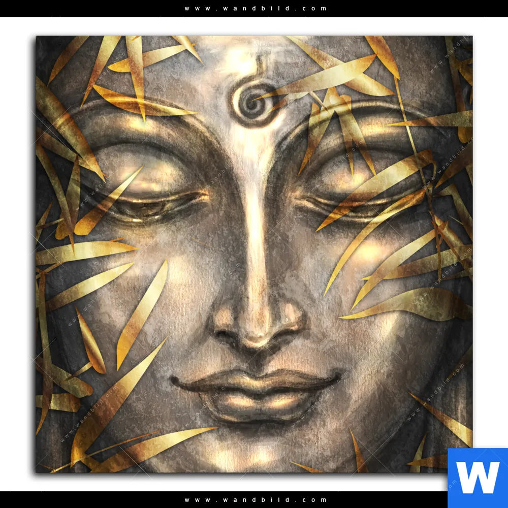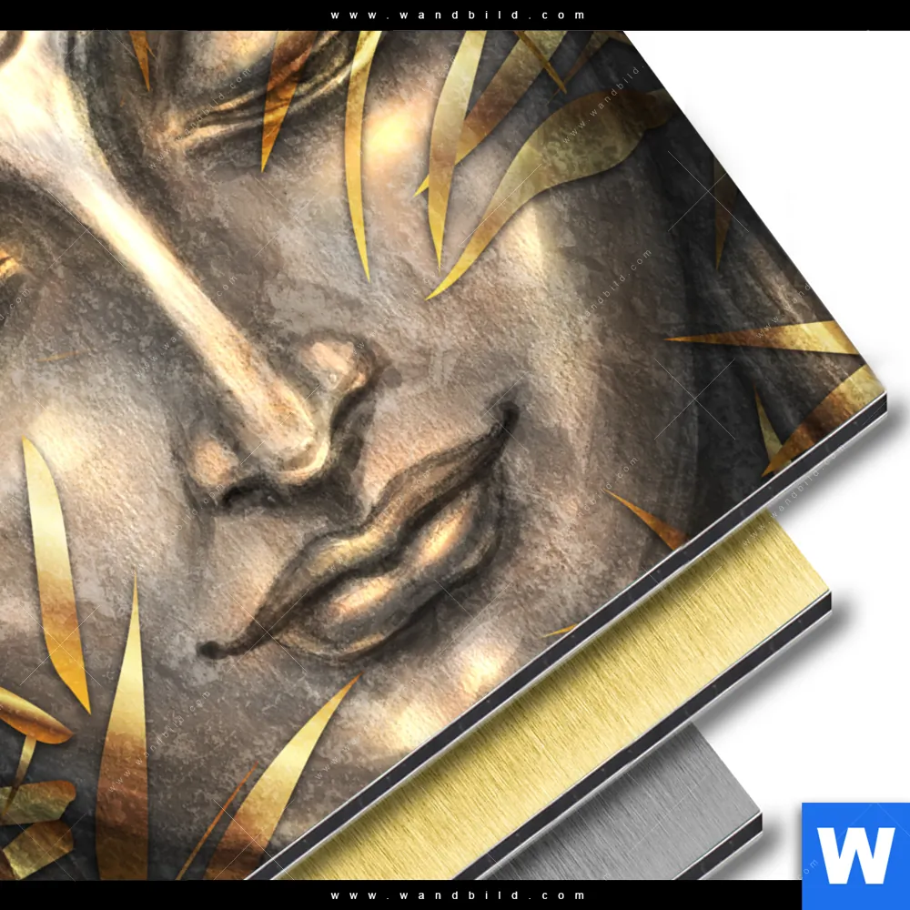 Aluminiumbild gebürstet | Buddha Silber & Gold | Quadrat