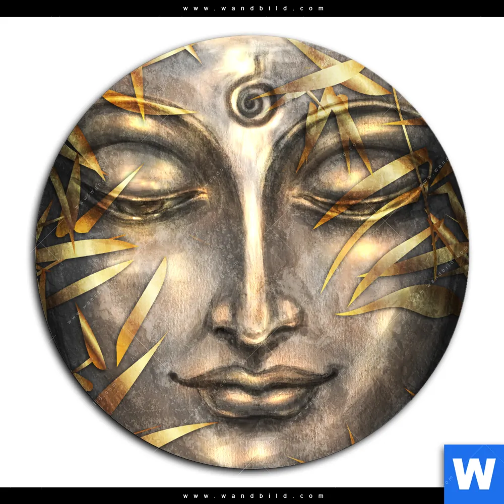 Aluminiumbild gebürstet | Buddha Silber & Gold | Rund
