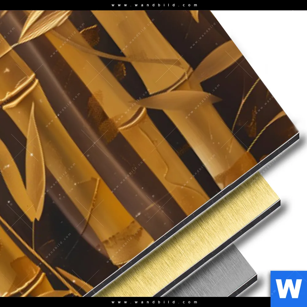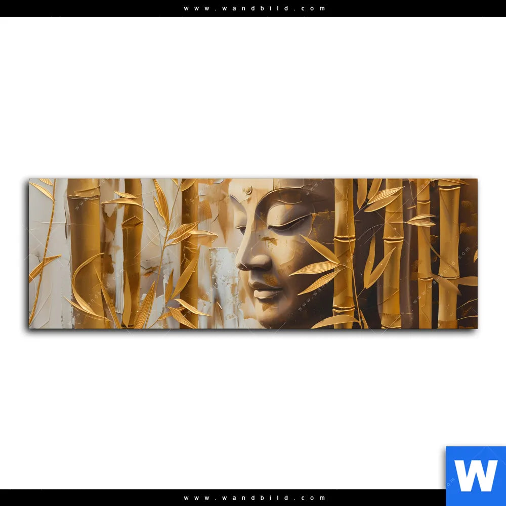 Aluminiumbild gebürstet | Buddha-Statue im goldenen Bambus | Panorama