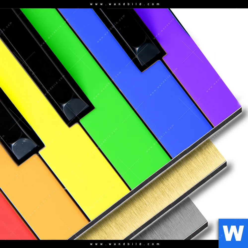 Aluminiumbild gebürstet | Bunte Klaviertasten | Quadrat