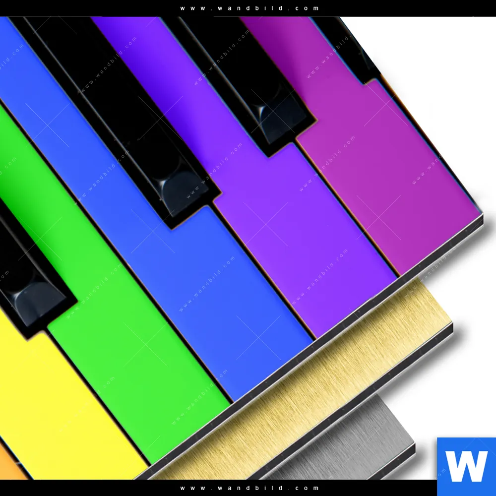 Aluminiumbild gebürstet | Bunte Klaviertasten | Querformat