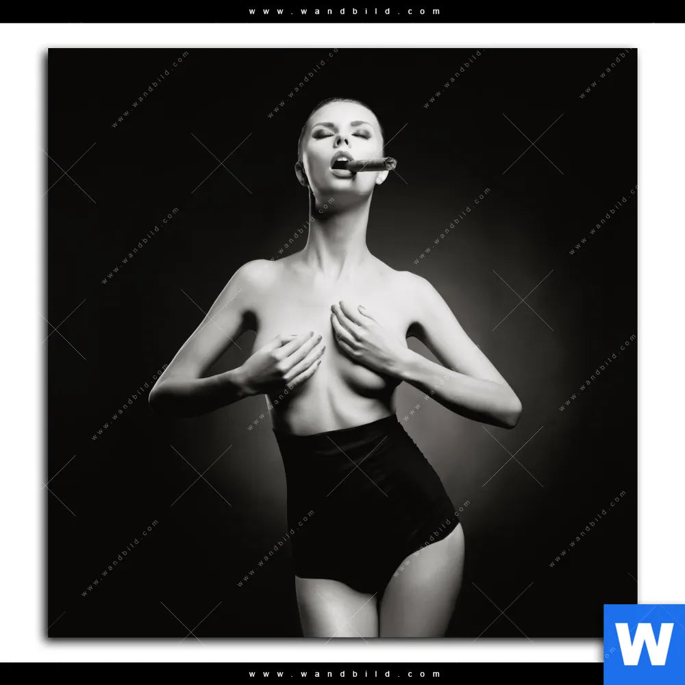 Aluminiumbild gebürstet | Dame mit Zigarre | Quadrat