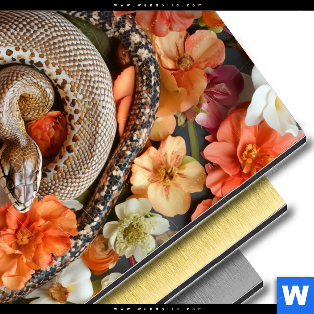 Aluminiumbild gebürstet | Die Schlange - Verführerische Tarnung | Hochformat