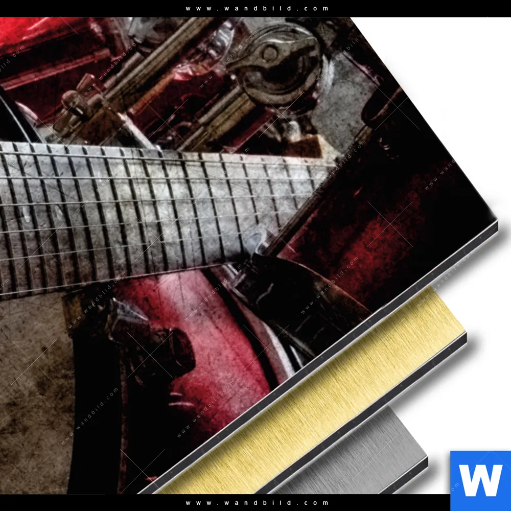 Aluminiumbild gebürstet | E-Gitarre Retro Look | Hochformat