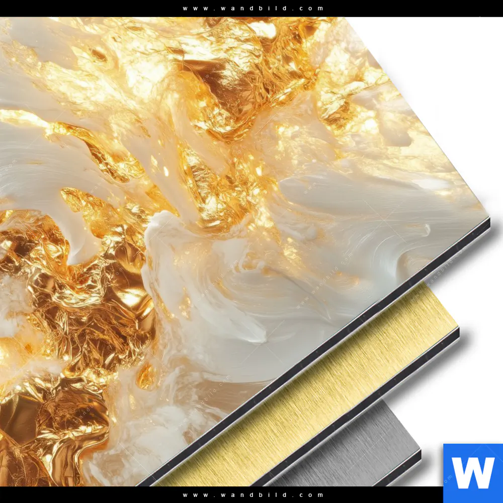 Aluminiumbild gebürstet | Edle Farbexplosion Gold | Quadrat