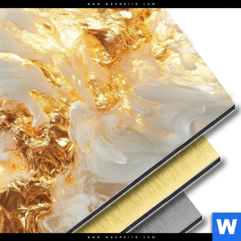 Aluminiumbild gebürstet | Edle Farbexplosion Gold | Rund