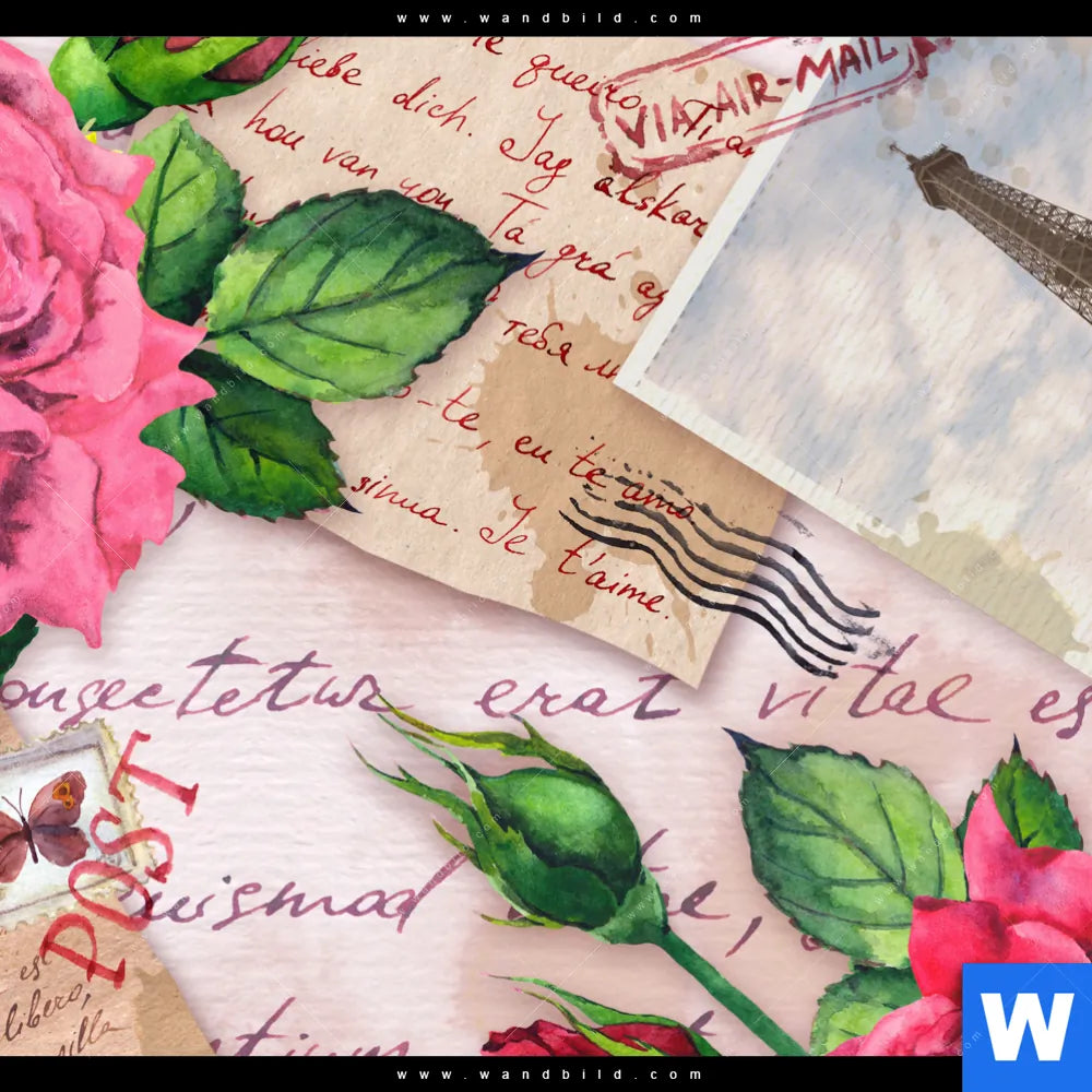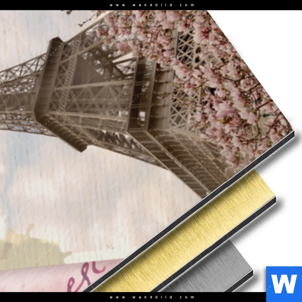 Aluminiumbild gebürstet | Eifelturm & Rosen | Panorama
