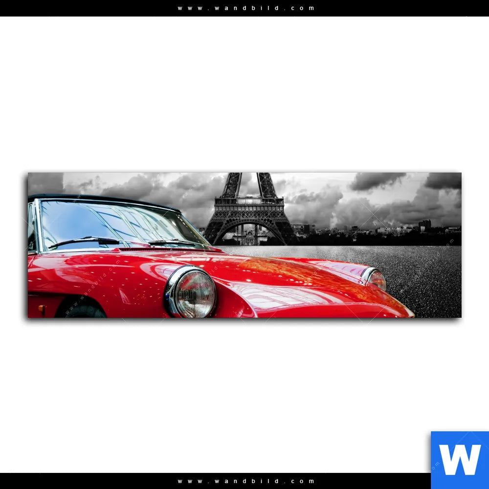 Aluminiumbild gebürstet | Eiffelturm & Rotes Auto | Panorama
