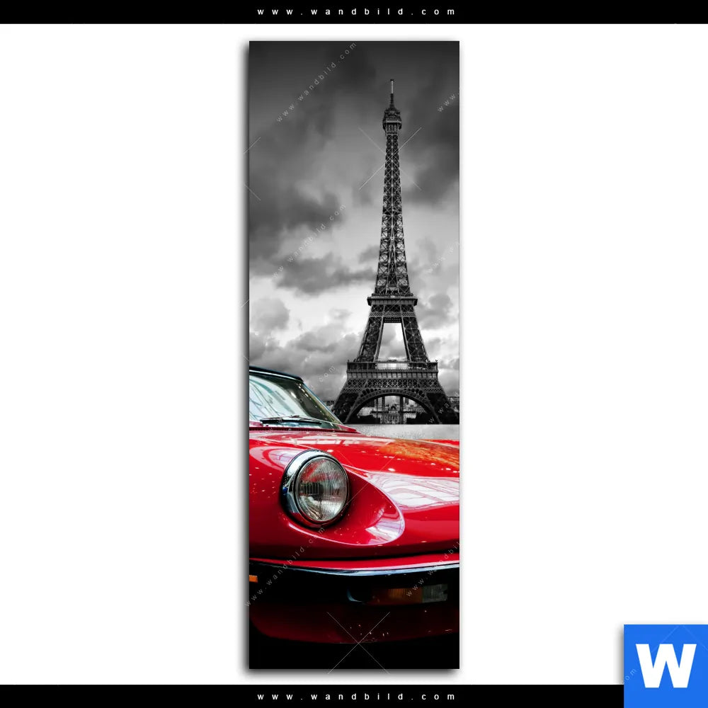 Aluminiumbild gebürstet | Eiffelturm & Rotes Auto | Schmal