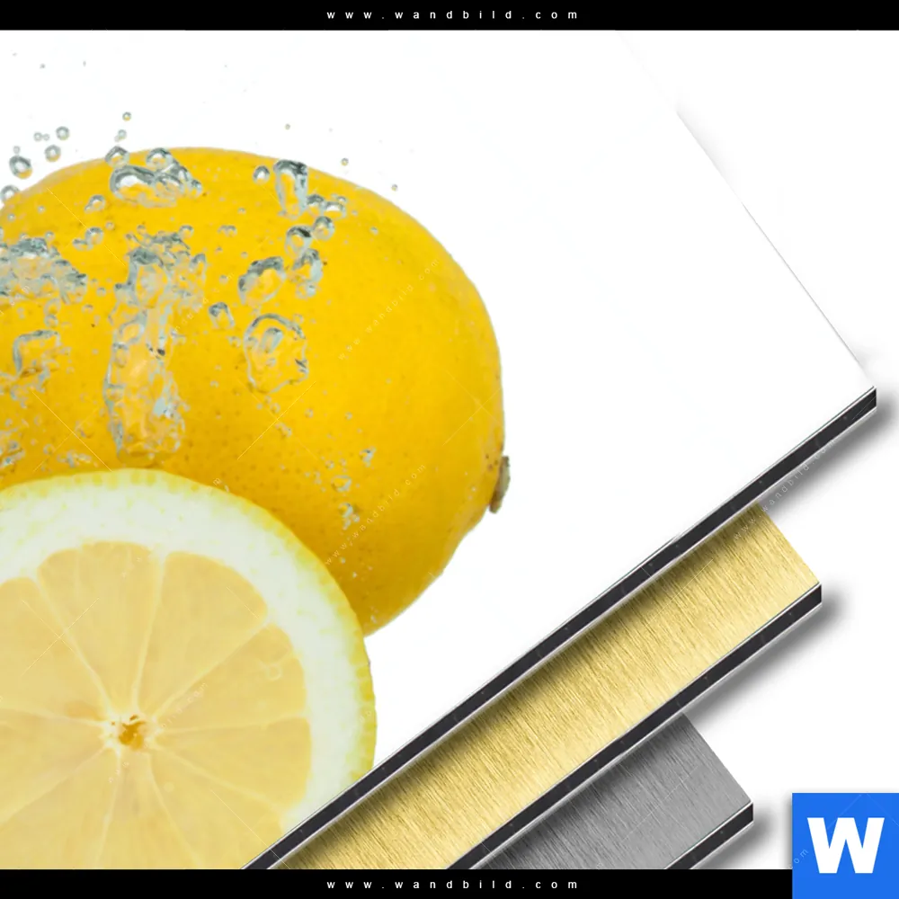 Aluminiumbild gebürstet | Ein Spritzer Zitrone | Querformat
