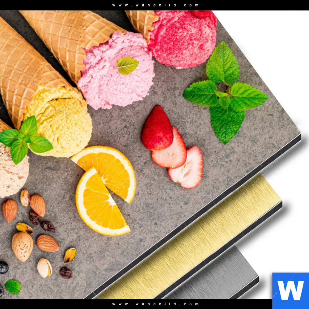 Aluminiumbild gebürstet | Eisgenuss in Perfektion | Hochformat