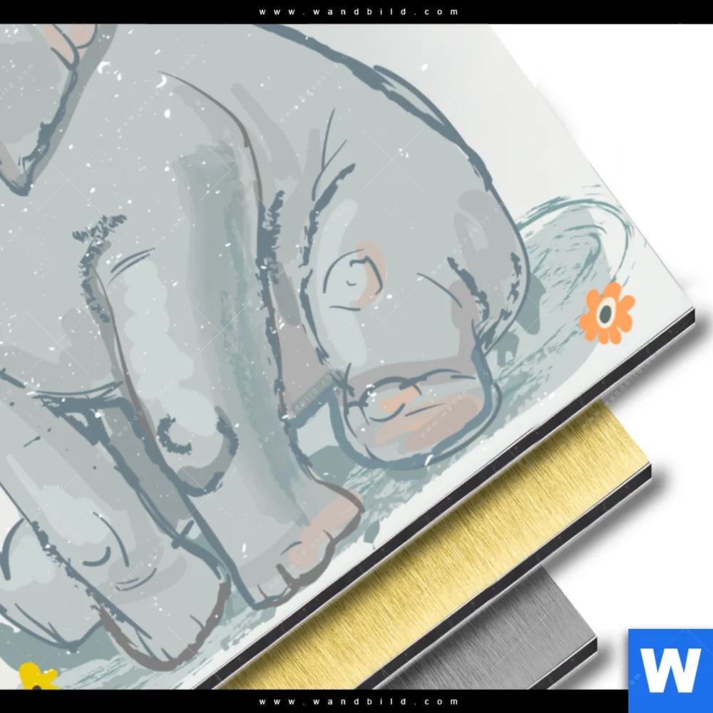 Aluminiumbild gebürstet | Elefant & Entlein | Querformat